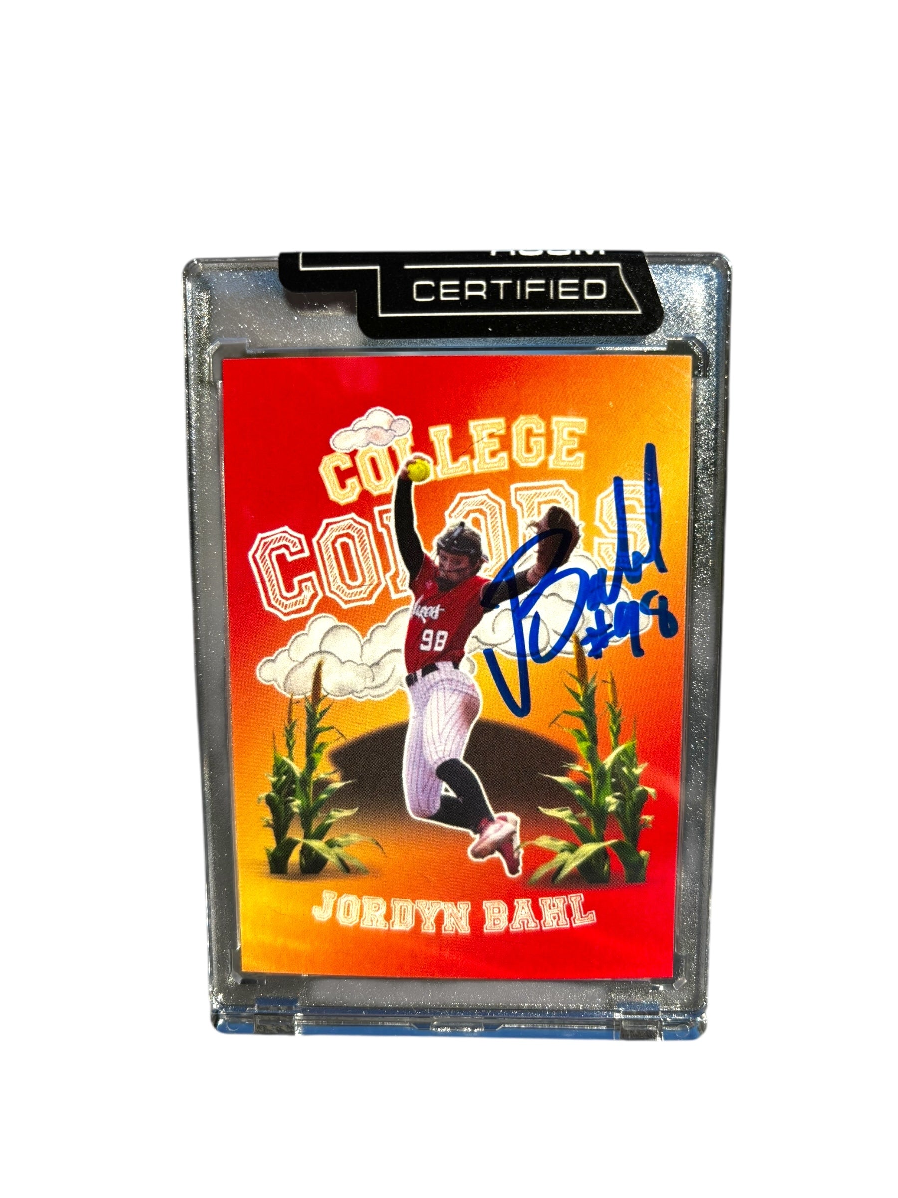 Jordy Bahl # 98 Nebraska cornhuskers signed college colors softball card.