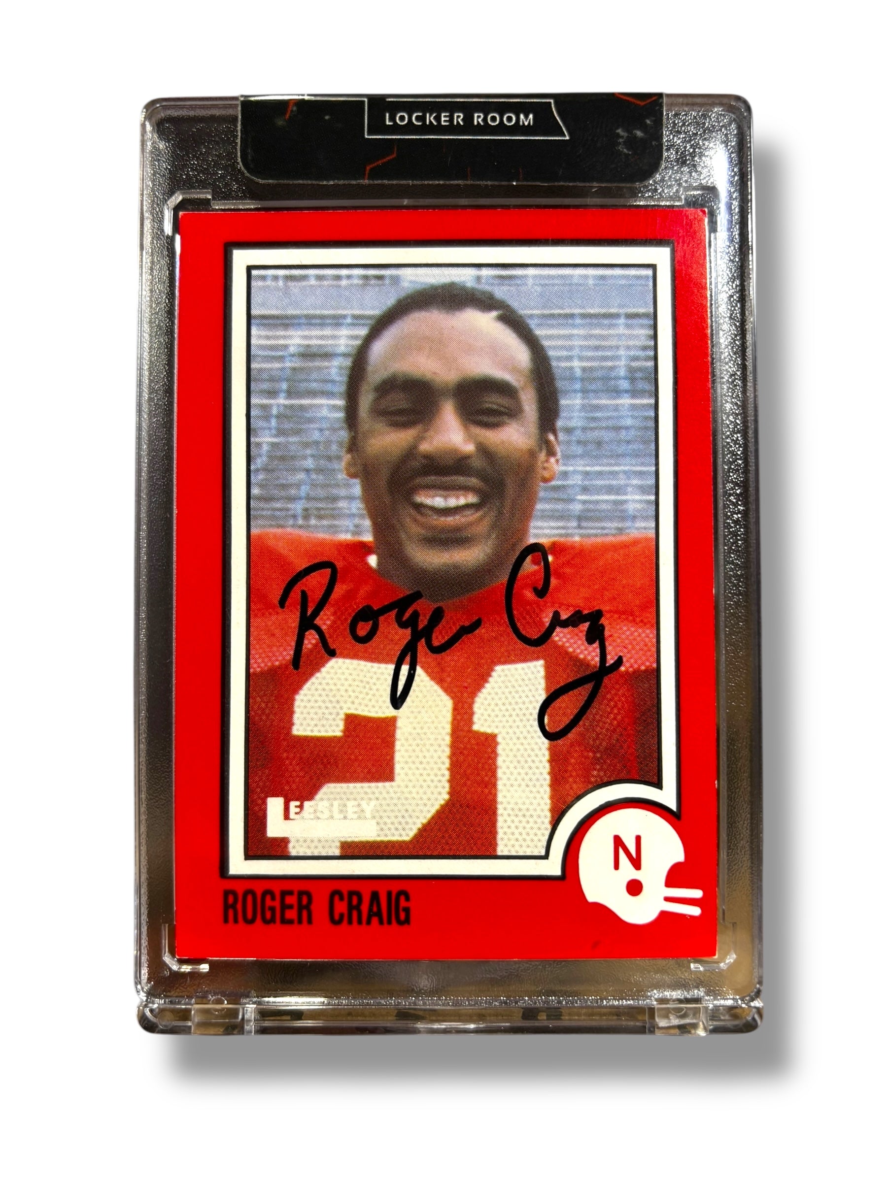 Own a piece of Nebraska football history with this authentic signed Leesley card featuring Roger Craig! This unique collectible showcases Craig's signature, making it a must-have for any Huskers fan.